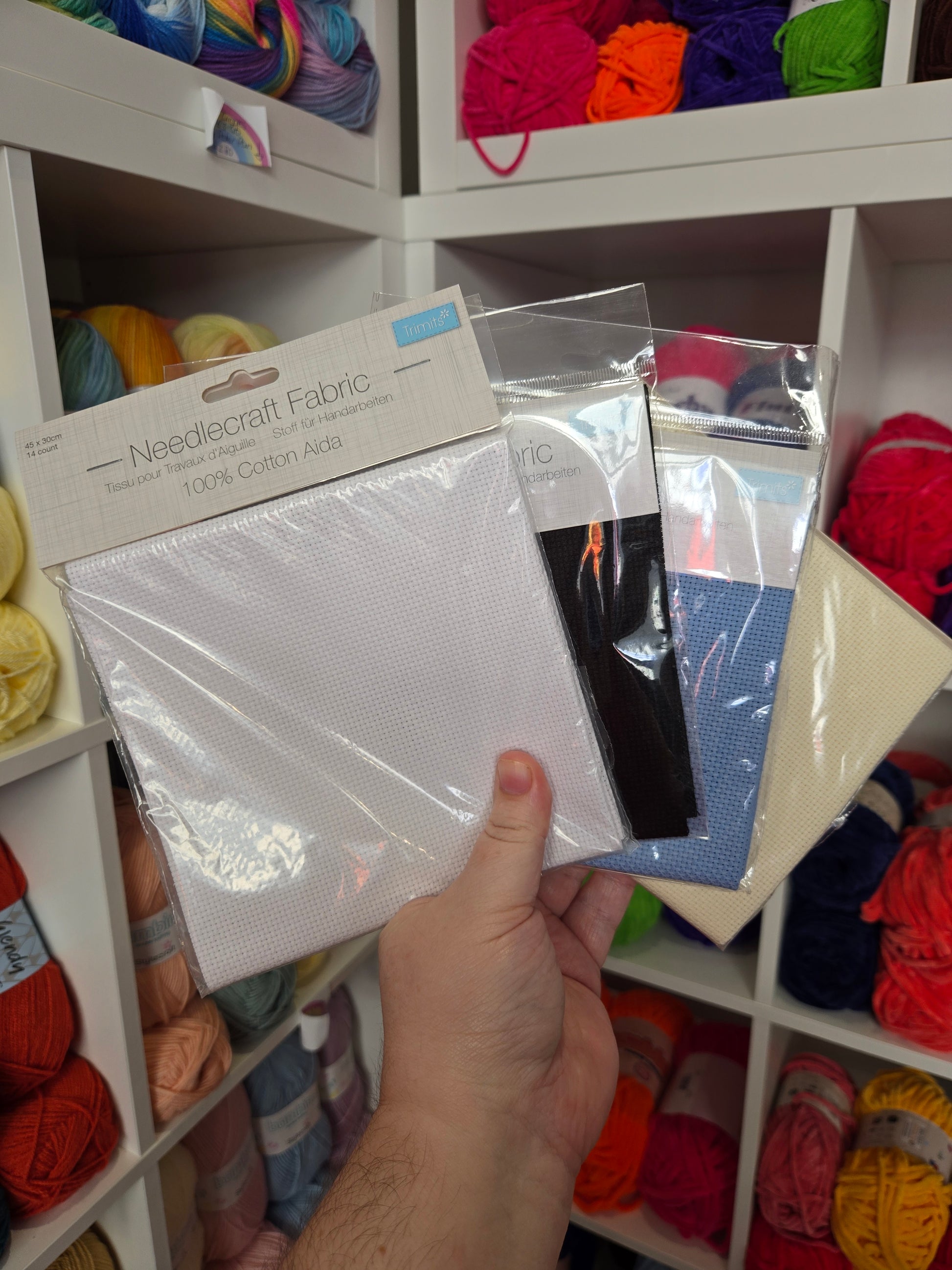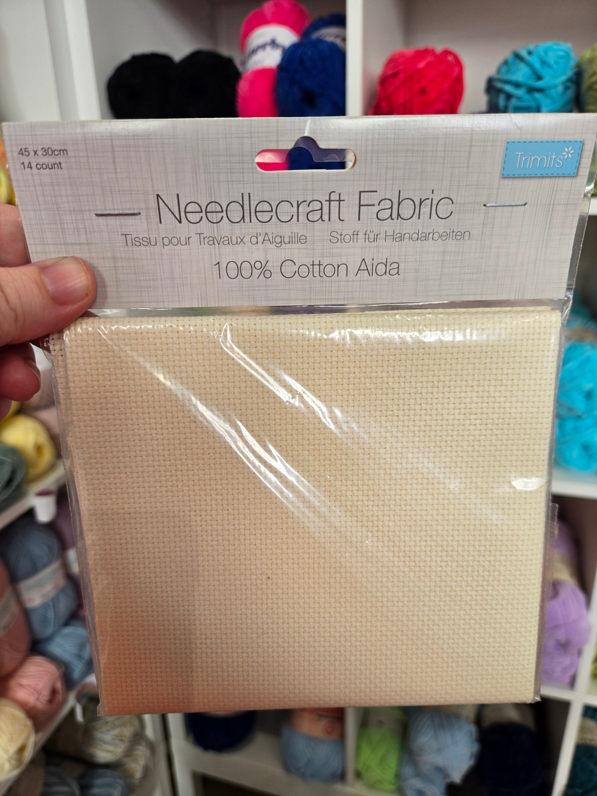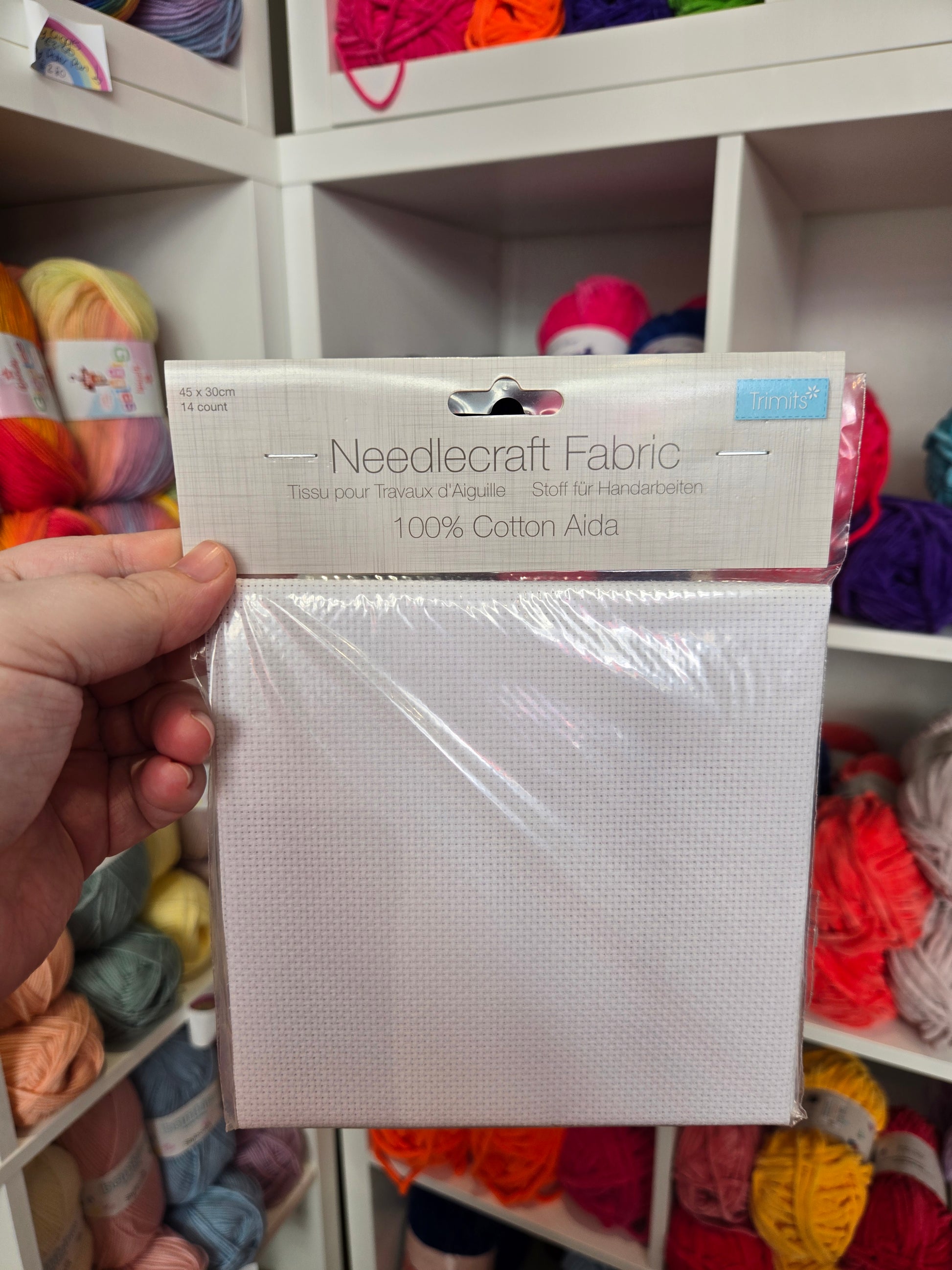 14 Count Aida or otherwise know as cross stitch fabric is the perfect count for beginners.